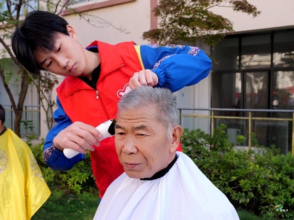 老人李朝乐感慨道,“我得一个多月都没剃头了,今天感谢他们啊,帮我们头发剃的干干净净、舒舒服服的。晚上又包饺子给我们吃,我们太高兴了。”
