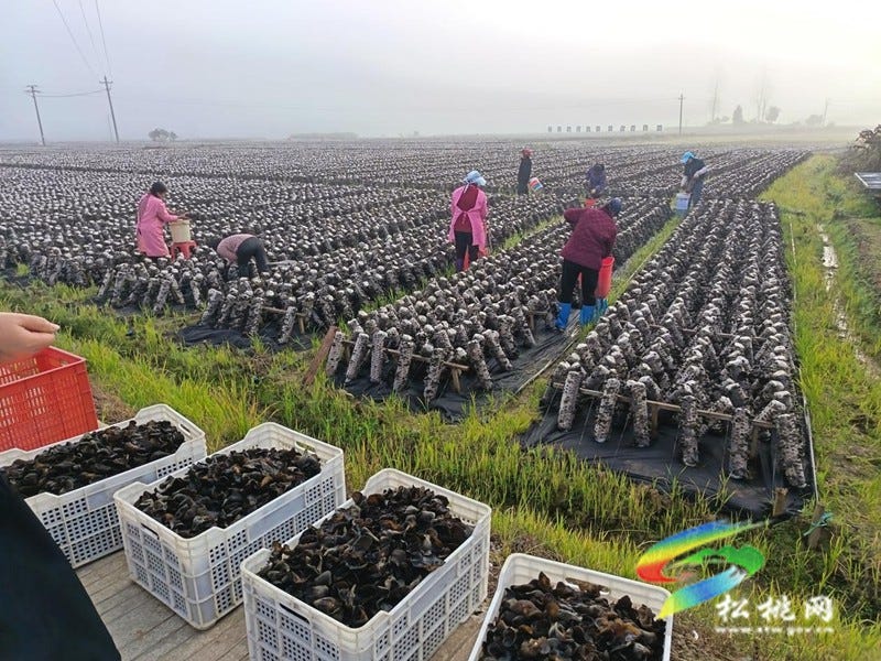 11月13日,浓雾弥漫,呈现冬日一片晴空万里景象,笔者走进普觉镇普觉院子木耳种植基地,放眼望去,一排排菌棒摆放整齐,菌棒上的木耳一簇簇、一朵朵的肥厚光亮。当下正值冬季第一茬木耳的采收时节,只见采摘工人们正穿梭菌棒