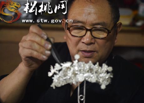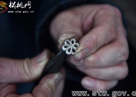 本网讯((记者 杨杰) 日益发达的现代加工业,不断挤压着传统老手工艺的生存空间,但总会有几个倔强的手艺人,他们坚信;人类最富创造力的始终是一双勤劳又灵巧的双手。家住松桃世昌乡火连寨的龙根主就是这样的老艺人,祖辈都是远近闻名的名匠,他的银饰制作手艺源自家传,十八岁那年艺成出师,从艺四十八载。银饰制作工序繁琐,即使简单的银项圈,也要经过煅烧、溶铸、打压、缠丝、剪丝等步骤。至于精美的凤冠,要由数百个薄      银片和细银丝衔接而成,考究的是耐心和眼力。作为松桃唯一一位纯手工制作银饰的工匠,龙根主为自己立了两条规矩:一是坚持用纯银打造,决不掺加杂银;二是认真对待每件作品,每个细节都精心雕琢。